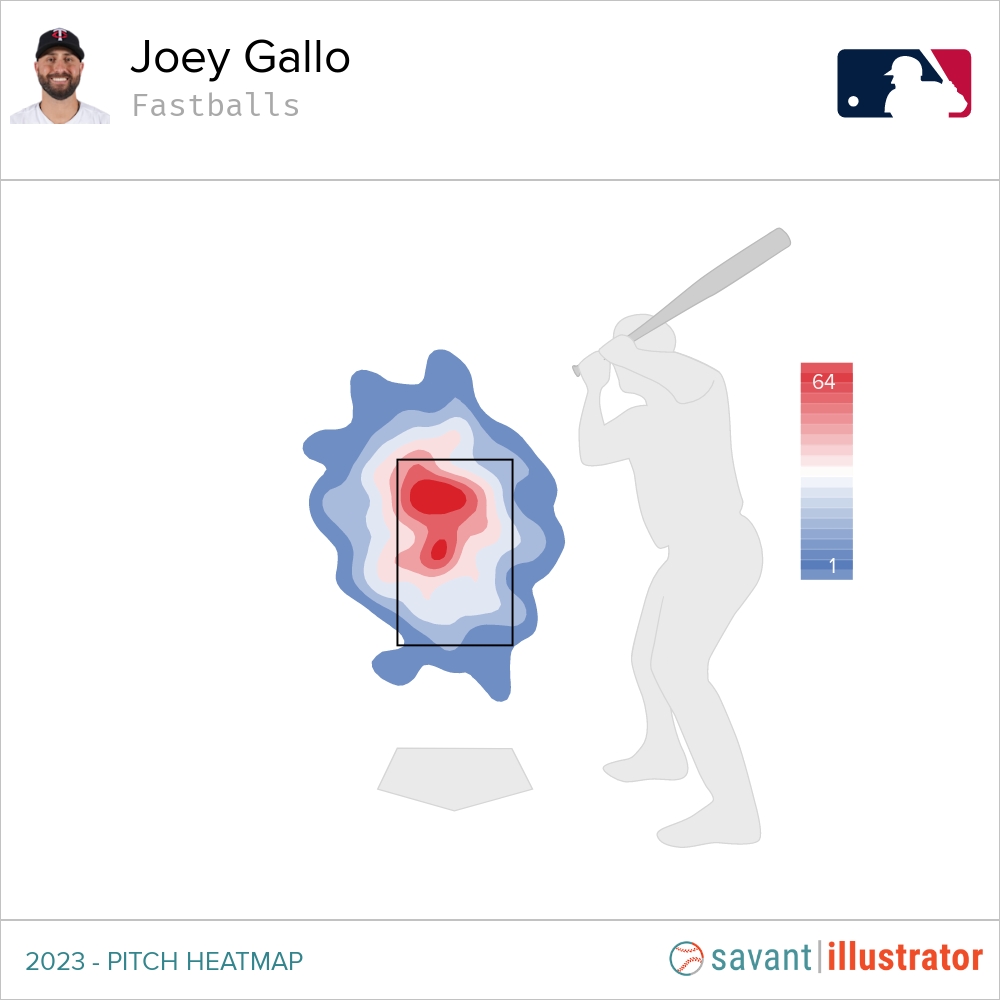 When a hitters approach is as boom or bust as Wallner’s, its important not to have a zone on the plate pitchers know they can go to get you out. I keep mentioning Gallo because their approaches mirror each other a lot and they both spent time on the Twins together in 2023. One thing that likely led to Gallo’s downfall as a hitter was the discovery that he struggled to reach high pitches, especially fastballs.